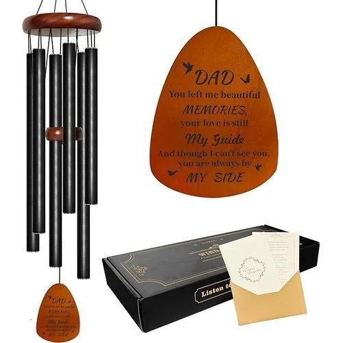 ⢠ăGift Box & Message Cardă Windchimes in memory of a loved one arrives in a refined black-gold box (14.6 x 6.3 x 2 in), thicker than standard for protection. Inside includes a sympathy card and a poem card (âLetter from Heavenâ), with space for your personal condolences. A respectful, ready-to-gift set that adds sincerity to your memorial gesture.