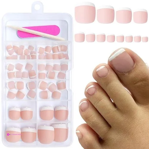 β’ High Quality toe nails press on: Full coverage fake toe nails are made of quality ABS material, it is sturdy, strong and durable, will not easy to bend or break. The bottom of the false nail is flexible that can fit your natural nails well and donβt hurt our nail edges and the top is more solid to avoid folding. which can last for about a week. Reusable press-on nails are a great choice for at-home manicures.