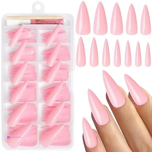 • Stiletto press on nails long kit: come with 120pcs stiletto pink nails press on long for women girls teens diy long false nails. 1*strong nail glue for get long lasting artificial pink stiletto nail, 5 nail adhesive tabs. 1 nail file and 1 wooden stick. No need to buy additional materials, you can achieve the long nail salon effect at home in minutes. Providing you with two ways to press on nail. Save your money and time