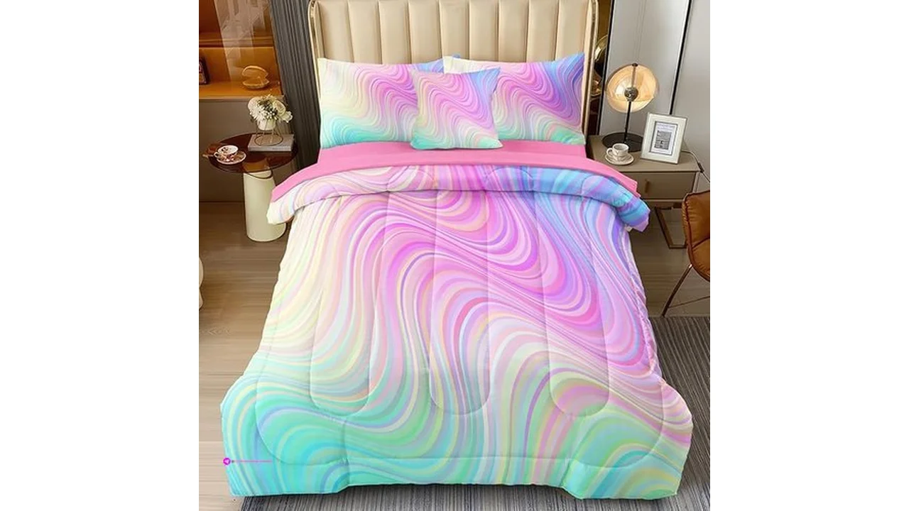 $19.99 BERTSUCA 4 Pcs Twin Comforter Set, Colorful Gradient Girls Bedding Sets, Pink Tie Dye Rainbow Comforter Set