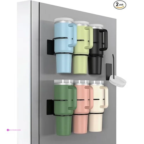 β€’ βœ” Flexible &Space-Saving: This innovative tumbler organizer attaches seamlessly to the side of refrigerator or other metal surfaces.It efficiently organizes up to 6 Stanley 40 oz cups and 6 cup lids, freeing up valuable counter and cabinet space.