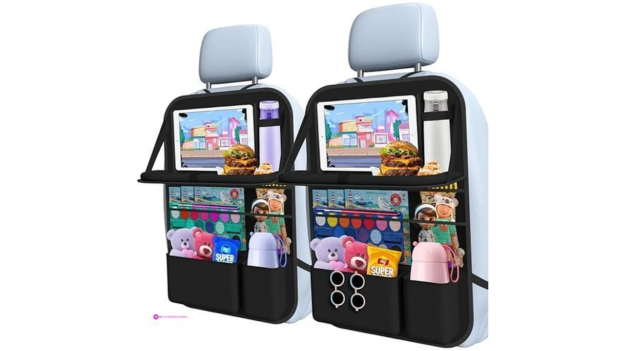$11.99 Car Backseat Organizer with table Tray, 9 Storage Pockets Backseat Car Organizer (1Pack)