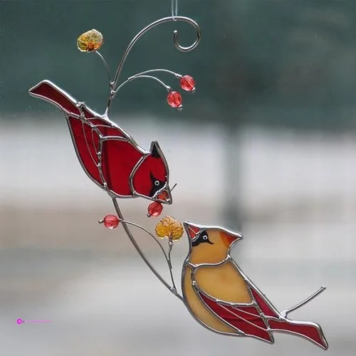 ⢠ăPerfect Anywhereă- This cardinal bird stained glass is sure to be a beautiful sight to hang in your garden, patio, balcony, window, hallway, entertainment venue and more. Cardinals suncatchers can also be used to decorate bedrooms, living rooms, gardens, terraces, and anywhere that needs to add a beautiful melody to the environment.