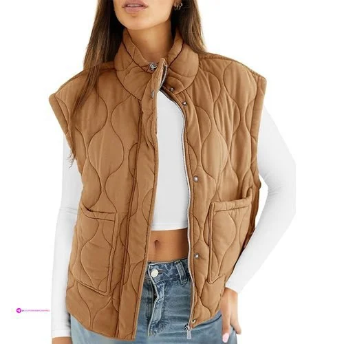 • Feature: Two utility pockets for essentials, quilted design, stand collar with snap button, high neck with adjustable drawstring, sleeveless, lightweight,trendy loose silhouette, full zip, solid color, warm outwear, spring fashion, padded gilet