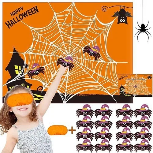 • EASY TO PLAY: First, marking a line on the ground as the staring line. Second, kids select one lucky number from 16 pcs Halloween spiders, Third, wear the eye mask, Forth,try to pin the spider on the web, Final, the closest one win the game.Nicehalloween kid party games