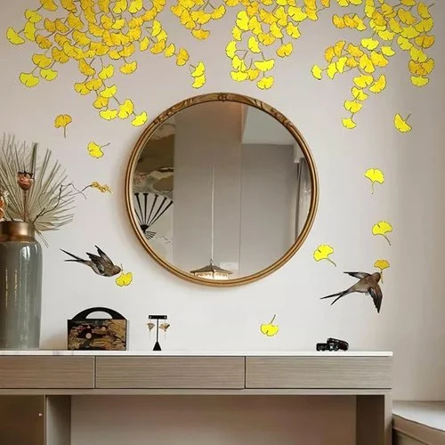 ⢠ăProduct Featuringă Our gold ginkgo leaf wall sticker uses the metallic luster of the gold stamping process to present bright and textured golden ginkgo leaf patterns, bird patterns, forming a strong visual focus and enhancing the artistic sense of wall decoration. At the same time, the golden element gives the wall sticker a sense of luxury, which is suitable for modern simplicity, light luxury and other styles, and can easily enhance the grade and atmosphere of your home or space