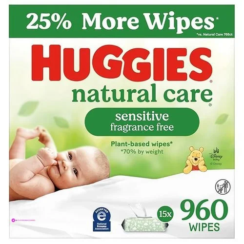 $17.99 Huggies Natural Care Sensitive Baby Wipes, Unscented, Hypoallergenic, 99% Purified Water, 15 Flip-Top Packs (960 Wipes Total)