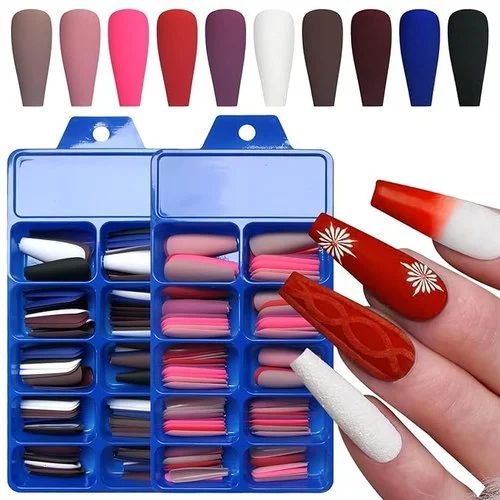 • Coffin Press on Nails Kit including 2 pack 200c long coffin press on nails with 10 different glossy colors, 20pc nail tips eacy color.200pc press on coffin nails package are convenient to stroage and ready for beauty nail gift giving.