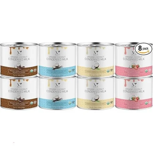 • Organic Coconut Condensed Milk Variety Pack: Indulge in a delightful assortment of flavors with this organic coconut condensed milk variety pack, including coffee, strawberry, plain, and vanilla. Perfect for enhancing your favorite recipes with a creamy touch.