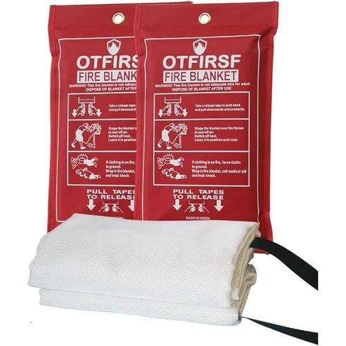 • OTFIRSF Fiberglass Fire Blankets:Safely put out a fire in seconds.Anyone can use it without training.Works On Most Types Of Fire,includes grease,wood,paper,and even electrical fires. Use as emergency survival blanket or fireproof blanket for grill. Safe to drape over adults, children, or pets.
