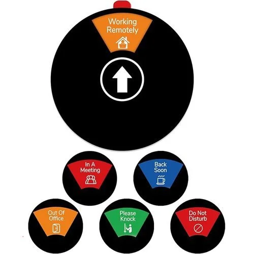 ⢠ăEASY TO ROTATEă – Simply spin the knob to rotate between status. Each status has a small magnet to helps securing the status in place. (NOTE: The signâs magnet is intended for stabilizing the status only, and cannot stick directly to metal)