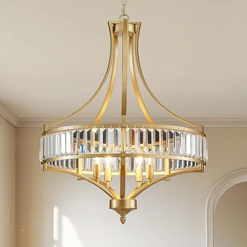 • ELEGANT CRYSTAL ACCENTS: The gold chandelier combines a stylish design with sparkling crystal pieces. Whether in a kitchen table setting or as a hallway light fixture, this stunning piece enriches your home decor, highlighting your personal style throughout your living space