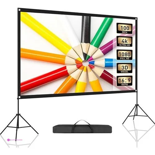 ⢠ćFoldable and Durableć This projector screen with stand is designed for convenience and durability, being both foldable and able to withstand wear and tear. Easy to store and transport, it ensures long-term use and maintains its quality, making it ideal for regular outdoor use.