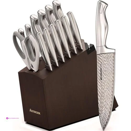 Knife Set, Astercook 15 Pcs Knife Sets for Kitchen with Block