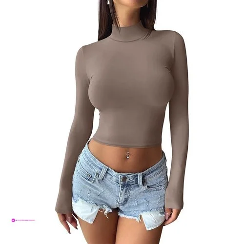 Full Sleeve Crop Tops For Women Crop Turtleneck… Coupon
