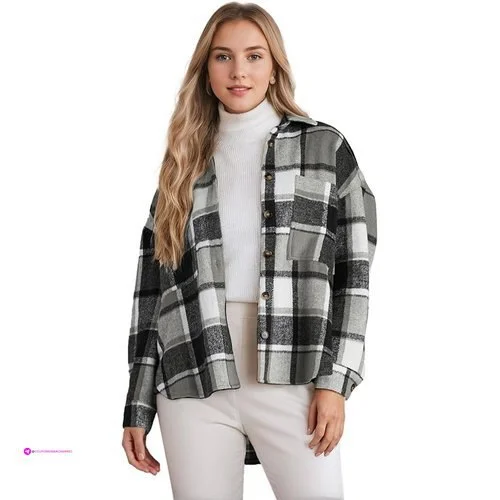 Women’s Casual Plaid Shacket Long Sleeve Button Down Flannel Shirts