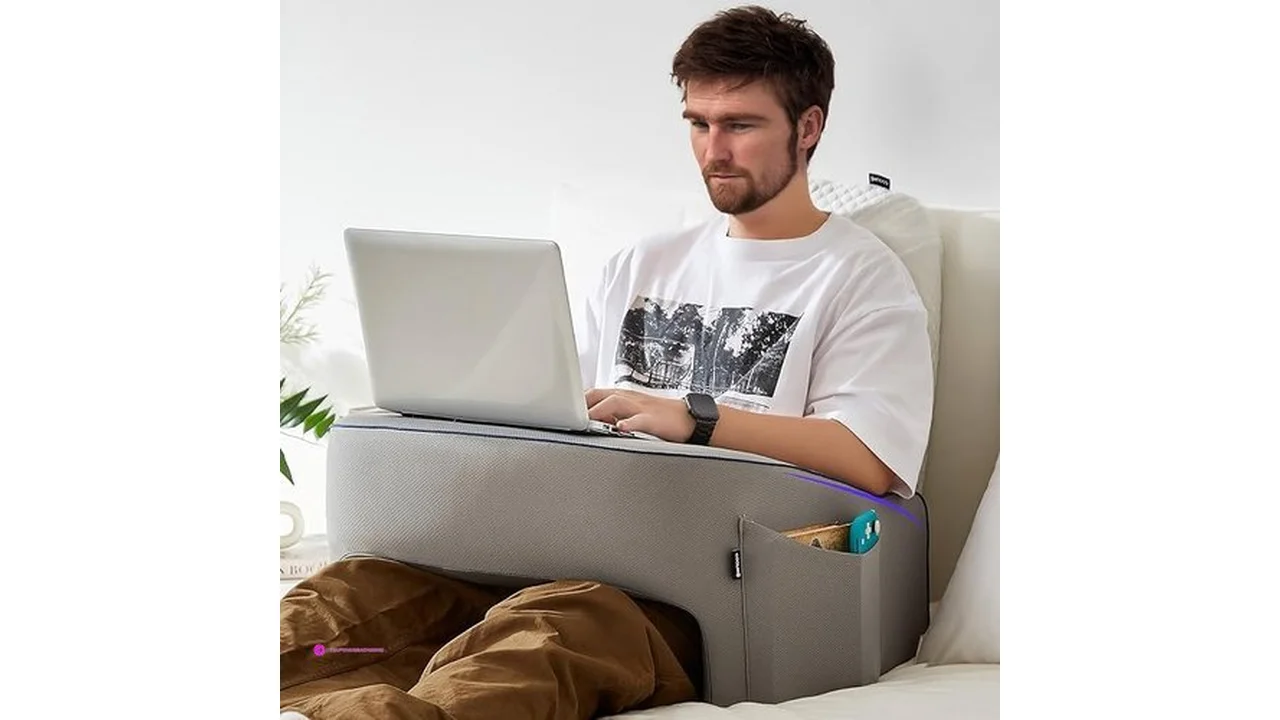 $28.99 Soft Lap Desk Pillow for Adult, Extra Large Reading Pillow with Pocket, Arm Rest Pillow, Memory Foam Bed Rest Pillow can Reading, Working in Bed Floor Sofa (Grey)