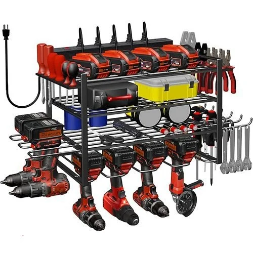 • Built-in 6-Hole Power Strip: Flexible charging design, you can install the power strip as you like according to your needs. Very convenient for charging your tool batteries, and the metal power strip with surge protection of 1200J. Able to protect your device to a certain extent. Utility rack size: L:16.5in * W:9.4in * H:16.5in. The power cord is 6.6 FT long 16AWG, and the charging station is 15A 125VAC 1875W 60Hz.
