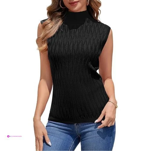 • Features:Solid color,Sleeveless,Mock Neck,Breathable,Threaded Hem,Diamond Pattern,This basic essential knit mock neck knit vest is a must have for every fashion women to show your layering, feminine silhouett