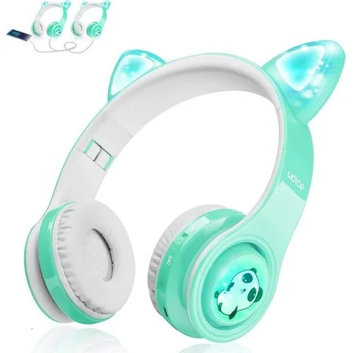 • 🎧🎧【Colorful Led Lights & Music Sharing Function】: It’s designed with lovely ear, pattern and charming flashing lights on the kids Bluetooth headphones, In a dittion, we designed special 3.5mm aux cable, the cables support to share the games, music or video in multiple WOICE headphones, we wish to offering kids a cheerful time with friends and families.