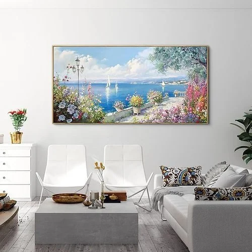 • Blue coastal wall art size :Measuring approximately 20×40 inches, this blue coast mural with romantic seascape flowers is perfect for creating a hot love atmosphere in the bedroom.