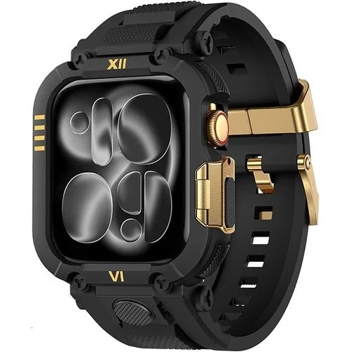 • 【COMPATIBLE MODELS】This men sport bands compatible for black gold apple watch band 46mm with bumper for iWatch Series 11 10.Fits wrist size from 5.70″ to 8.75″ (145mm-220mm) [No Screen Protector]