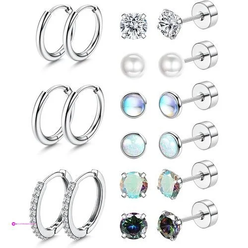 • ♥ Earring Sets for Multiple Piercing —— The surgical steel earrings set contains 6 pairs flat back earrings and 3 pairs hoop earrings for women. Perfect for women with multiple ear piercings like cartilage, helix, conch, and tragus. The versatile styles offer numerous mixing and matching possibilities.